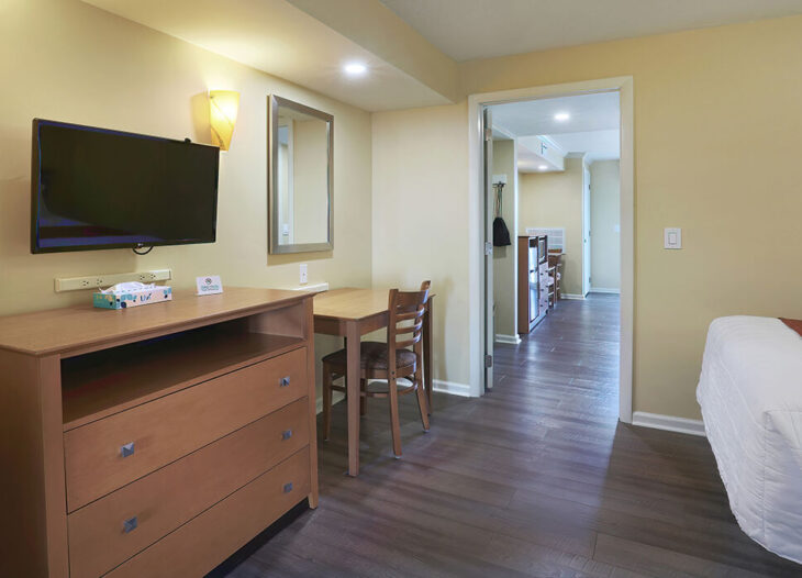 Two bedroom efficiency suite. Two double beds in each bedroom, two bathrooms, sofa bed, nicely equipped kitchenette, 3 tvs, central AC, located over the pool with an ocean front view.