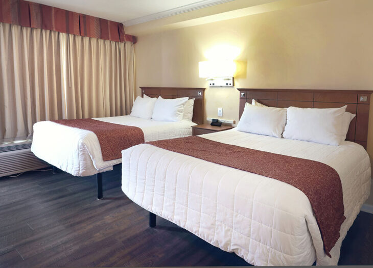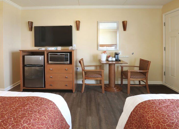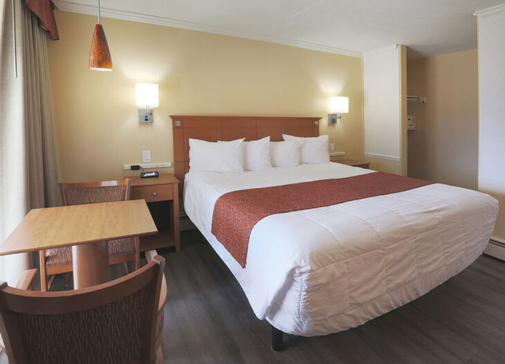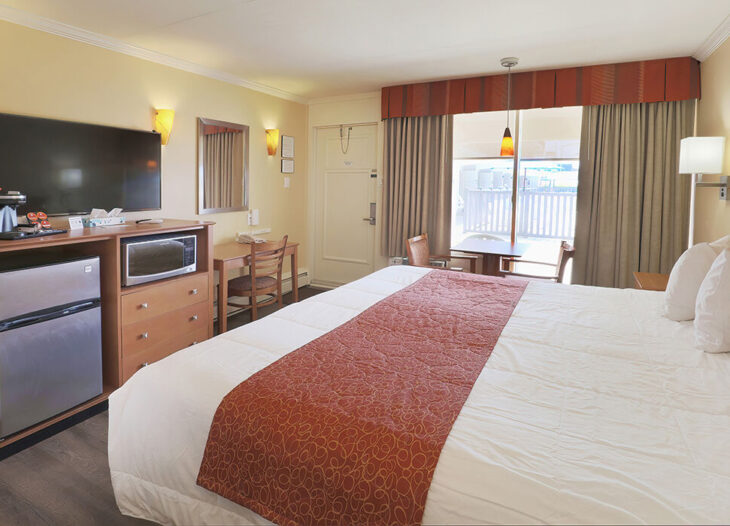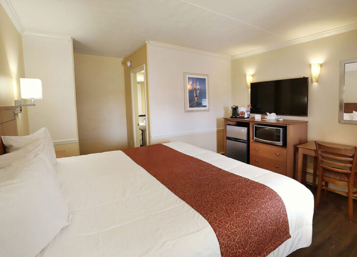 Standard room with either one king bed or two double beds, microwave, refrigerator, coffee maker, located street side. Comes with free off premise parking.